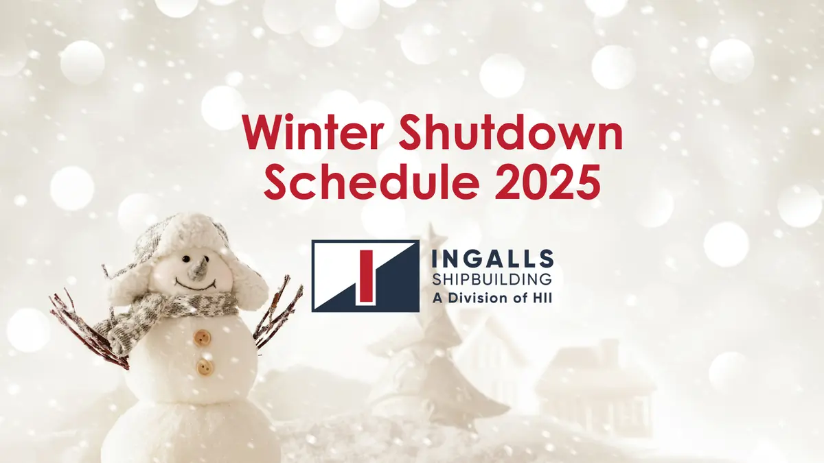 Ingalls will shut down normal operations Monday, December 22, 2025 until Monday, January 5, 2026.