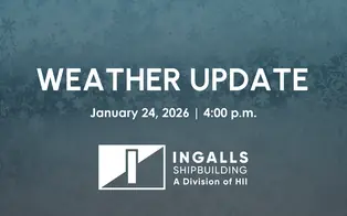 Ingalls Shipbuilding is monitoring the forecast for freezing temperatures and winter weather for the Pascagoula and Avondale facilities. Shipbuilder safety remains our top priority.