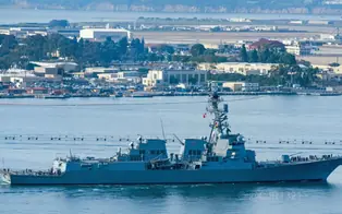 USS Jack H. Lucas (DDG 125) Arleigh Burke-class Flight III guided missile destroyer heads to Alpha Pier in San Diego on the first day of the WEST conference, February 2, 2026.