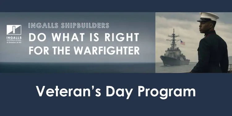 Join Veterans Employee Resource Team (VERT) and Culture Connectors for a Veterans Day Program honoring the service and dedication of our Ingalls shipbuilders who have served in the military.